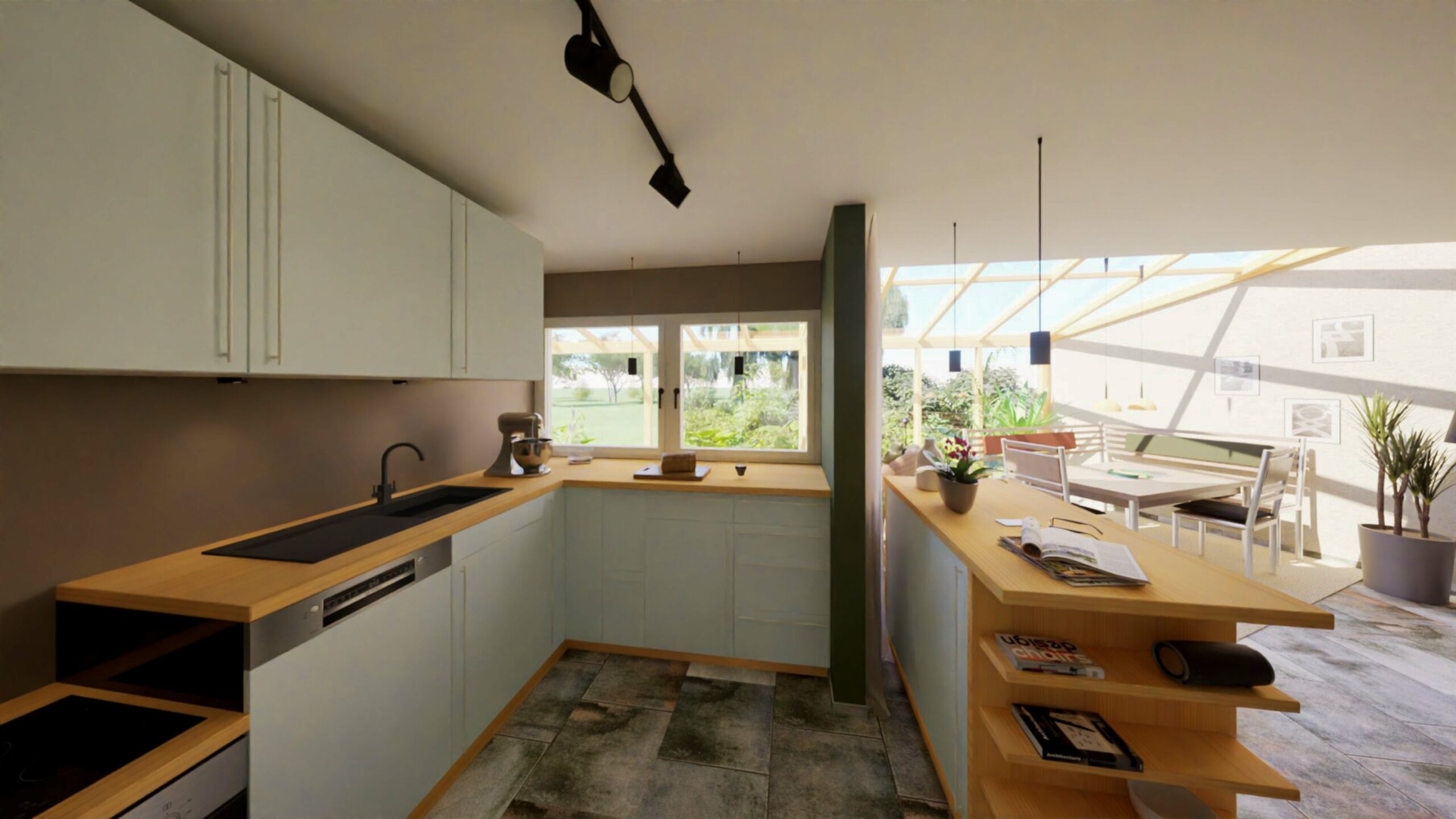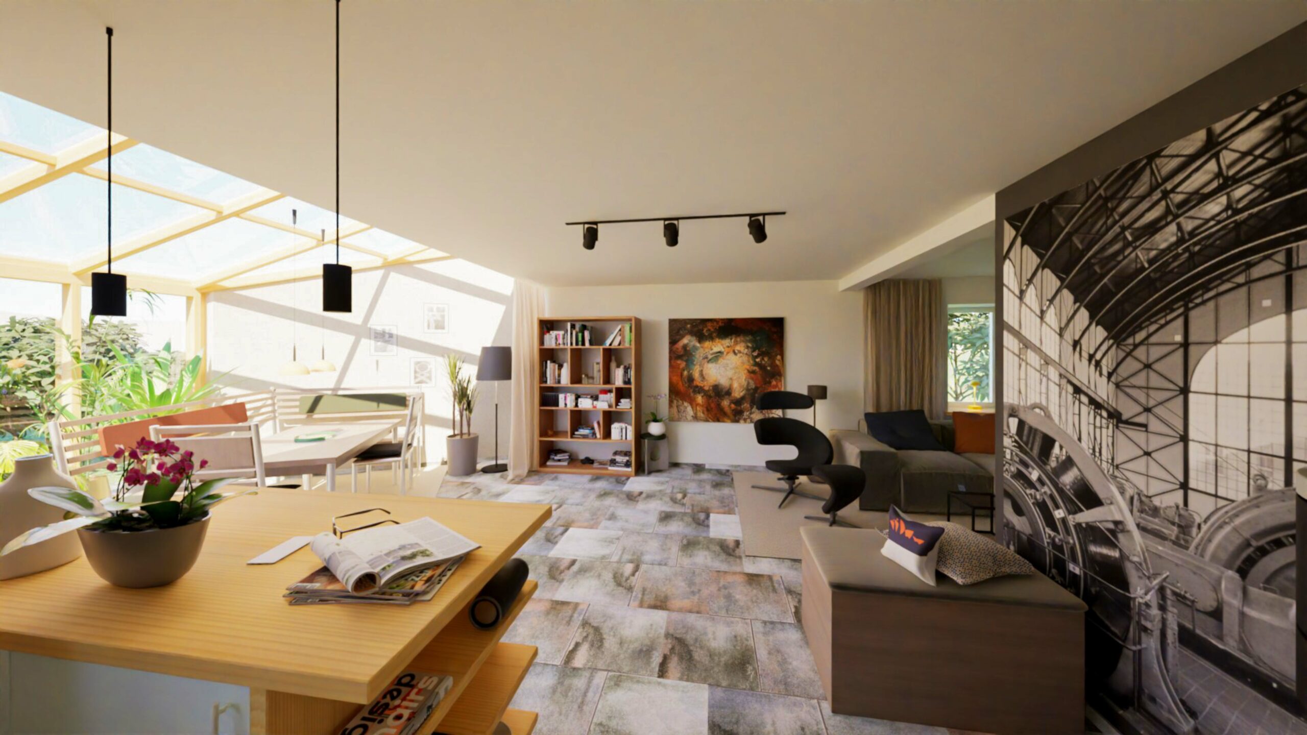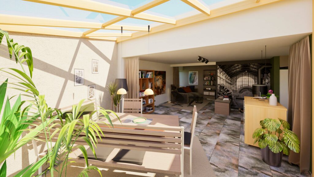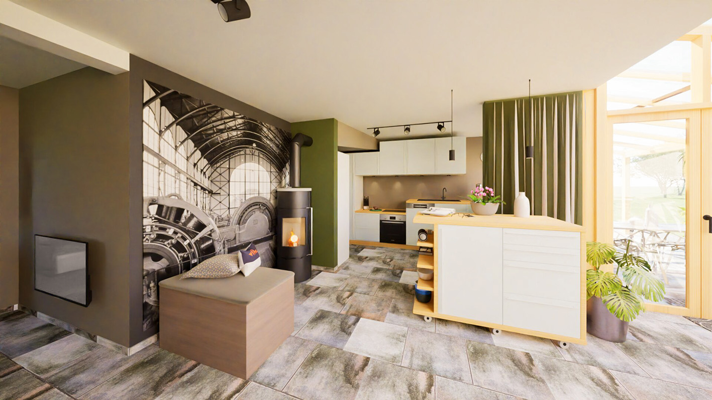 Vom digitalen CAD-Entwurf bis zum finalen Rendering. Jeder Schritt vom Zeichnen im CAD, über Materialstudien bis zur ausgearbeiteten Raumgestaltung erzählt ein Stück der Idee.